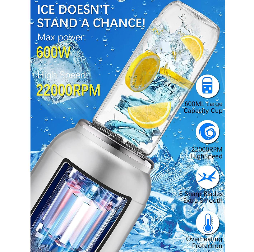 Upgrade 6 powerful blades: Food grade 6 blades use 304 stainless steel to ensure health and efficiency. The running speed is 13,500 RPM. It can handle hard ingredients such as frozen fruits / vegetables and small ice cubes to make delicious smoothies.